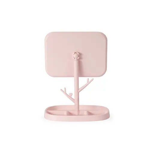 Descrição: Este espelho de mesa em formato retangular é uma opção funcional e elegante com estrutura em plástico de fácil montagem. Seu pedestal giratório permite o ajuste do espelho em diferentes ângulos e posições. Além disso, contém ganchos laterais e quatro divisórias na base para organizar objetos, ampliando a sua versatilidade.