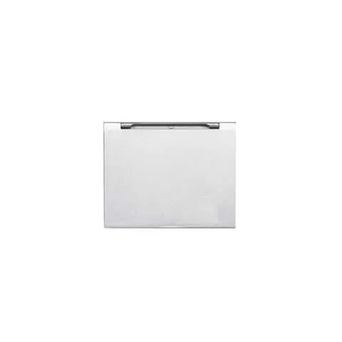 Espelho plástico duplo com aumento. Frente e verso liso porém a parte superior não é plana, possui um detalhe de ondulação.