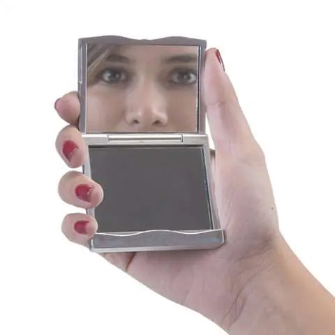Descrição: Espelho retangular duplo sem aumento, material em plástico resistente com superfície ondulada(área para gravação não é plana).