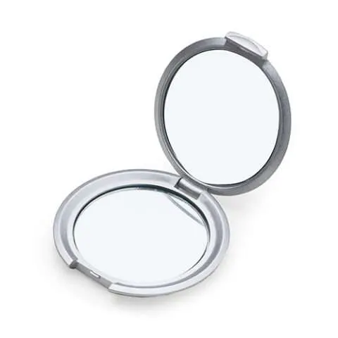 Espelho redondo duplo sem aumento, material em plástico resistente com superfície ondulada (área para gravação não é plana).