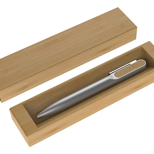Descrição: Estojo de papel para uma caneta com acabamento similar a bambu. OBS.: IMAGEM MERAMENTE ILUSTRATIVA, NÃO ACOMPANHA CANETA.