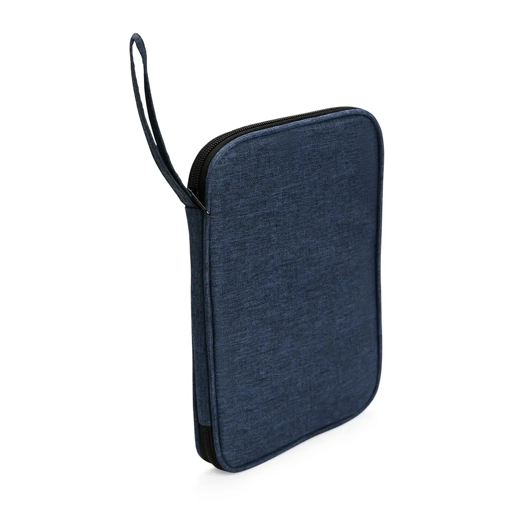 Descrição: Estojo confeccionado em poliéster resistente à água. Conta com bolso interno em tela de nylon e fechamento em zíper e divisórias em diferentes tamanhos em elástico. Possui alça de mão para transporte.