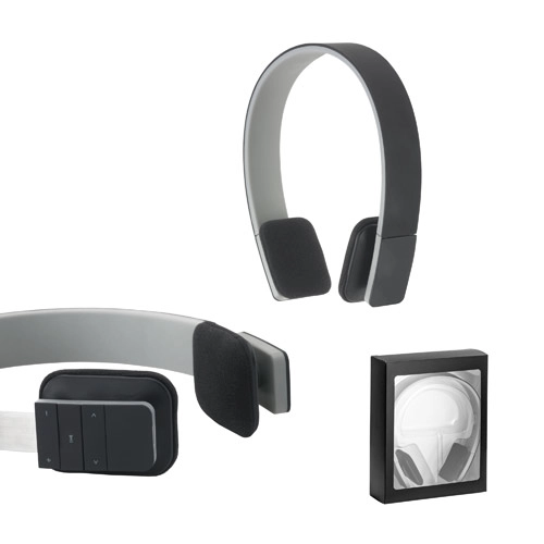 Fones de ouvido ajustáveis em ABS, com acabamento emborrachado e transmissão sem fios BT v4.1. Autonomia aproximada de 5 h. Função para atender chamadas, controle de volume e conexão à playlist do dispositivo móvel. Incluso cabo USB para carregar. Fornecido em caixa presente. 157 x 165 x 42 mm | Caixa: 161 x 200 x 55 mm
