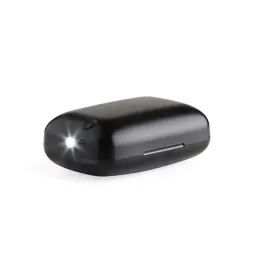 Descrição: Fone de ouvido bluetooth com comandos touch e case carregador. Com lanterna e display de bateria, o case pode ser utilizado também como um power bank de baixa capacidade para emergências. Material plástico. Acompanham 2 pares de eartips em diferentes tamanhos, lanterna, alça e cabo USB.
