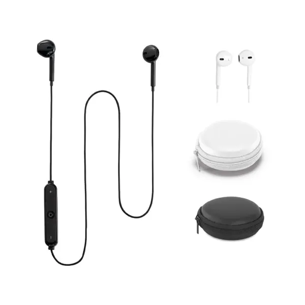 ABS e PVC. Com transmissão por bluetooth. Função para atender chamadas, controle de volume e conexão à playlist do dispositivo móvel. Incluso cabo USB/micro USB para carregar. Fornecido em bolsa em EVA. Bolsa: ø85 x 35 mm