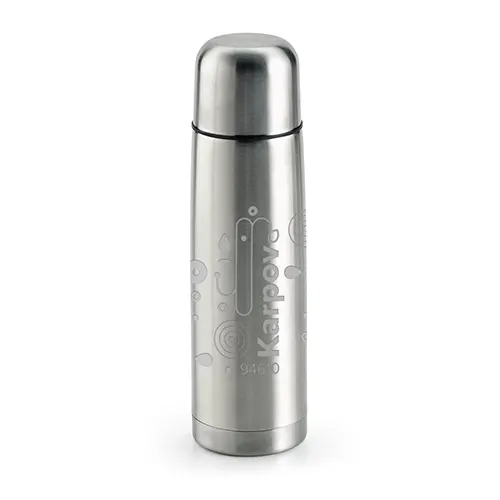 Garrafa em aço inox com parede dupla isolada a vácuo. Capacidade até 500 ml. Fornecida em caixa. ø69 x 240 mm