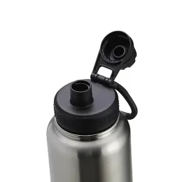 Descrição: Garrafa térmica com capacidade de 1 litro em inox com parede dupla, contém tampa plástica rosqueável com bocal e alça para transporte acoplados.