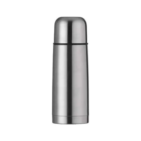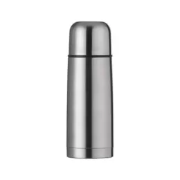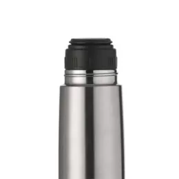Garrafa térmica 350ml em inox com tampa rosqueável, tampa interna em plástico resistente(basta um clique para abrir ou fechar). Acompanha capa protetora de couro sintético com alça de nylon.