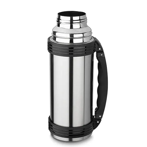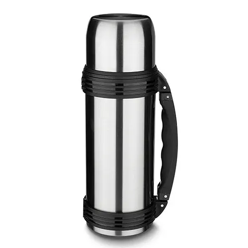 Garrafa térmica em aço inox com parede dupla isolada a vácuo,com capacidade de até 1,2l. Além de garantir a temperatura ideal do líquido por horas, é muito fácil de ser transportada por sua alça lateral que torna o uso desse potente recipiente muito mais simples. Tampa rosqueável e anel de silicone para vedação na tampa.