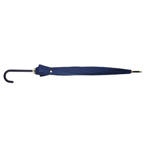 Descrição: Guarda-chuva de poliéster de impacto impermeável com abertura automátiva, estrutura em aço e 16 varetas em fibra de vidro. Possui pegador em couro sintético com botão de acionamento.