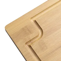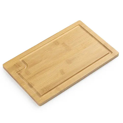 Kit Churrasco com 3 peças: Garfo, Faca com 31,7 cm, ambos com cabos de madeira e lâminas em aço inox, Tábua de bambu com 1,2 cm de espessura.