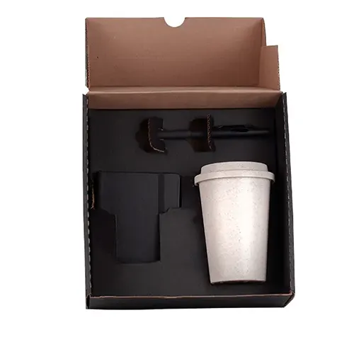 DESCRIÇÃO: Kit com copo, caneta e caderneta.