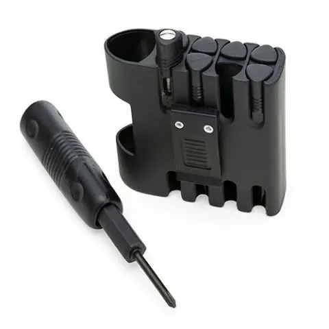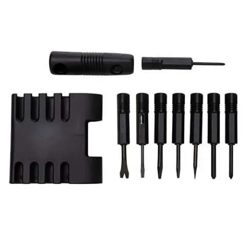 Descrição: Kit ferramenta com 8 peças + extensor. Case plástico com presilha traseira, possui 3 chaves Philips; 3 chaves de fenda, pé de cabra e chave pontuda. Uma das chaves de fenda é também uma chave teste de voltagem, para utilização das chaves basta encaixá-las no extensor.