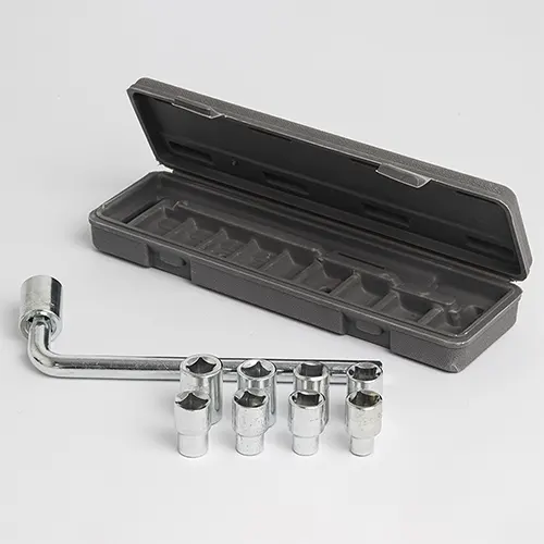 Kit ferramenta com 10 peças em estojo plástico. Contém: 1 chave L e 9 soquetes.
