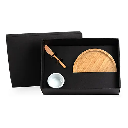 DESCRIÇÃO: Kit para petisco. Conta com petisqueira e espátula em bambu; ramekin em porcelana.
