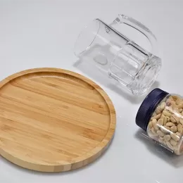 DESCRIÇÃO: Kit petisco com caneca e amendoim. Conta com petisqueira redonda em bambu; caneca em vidro; amendoim sem pele salgado 160g.
