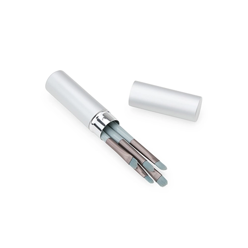 Descrição: Tenha uma maquiagem incrível com este mini kit de pincéis, ideal para precisão e acabamento perfeito. Com cerdas macias, cabos plásticos ergonômicos e estojo de alumínio, oferece elegância, conforto e resultados impecáveis para iniciantes e profissionais. Inclui um pincel língua de gato, perfeito para bases líquidas ou cremosas; um pincel chanfrado, ideal para delinear olhos e sobrancelhas; um pincel côncavo, indispensável para esfumar sombras; um pincel para aplicar sombras de forma uniforme; e um pincel de precisão reto pequeno, adequado para aplicar sombras ou fazer detalhes mais marcantes, como iluminar a linha abaixo das sobrancelhas.