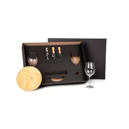 Uma gravação a Laser nas duas taças, na tábua e na tampa da caixa.