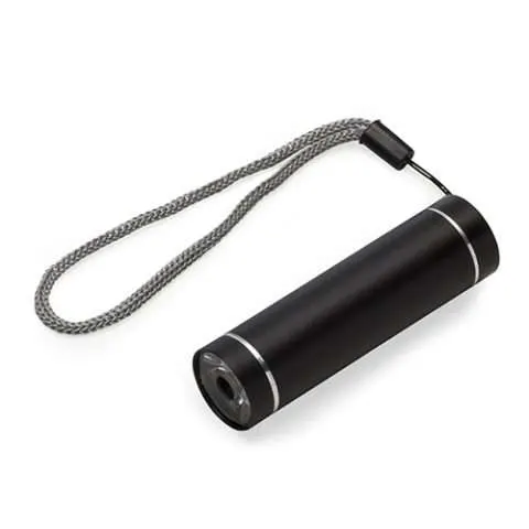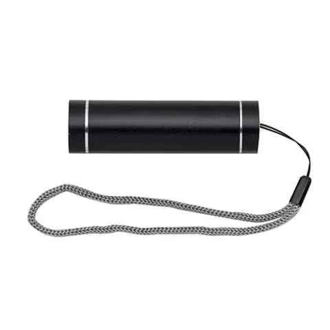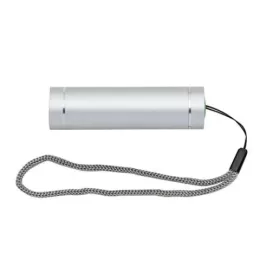 Lanterna bastão alumínio com led. Tampa de rosca lado oposto ao Led, possui acionador emborrachado em relevo e acompanha cordão. Possui anel prata em cada extremidade da peça, para utilizar basta colocar 3 pilhas AAA (não acompanha).
