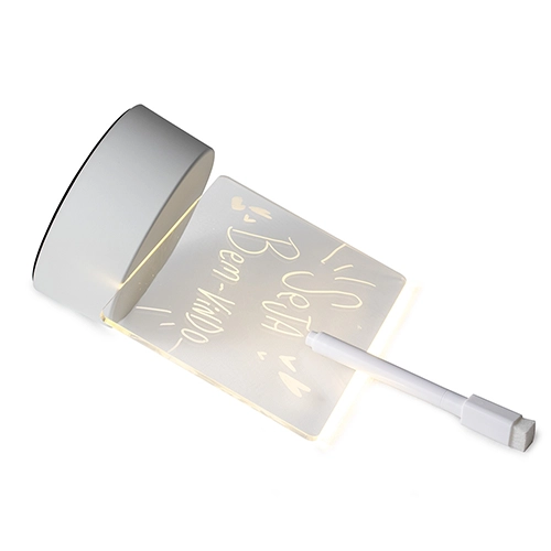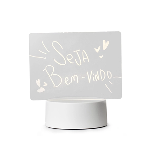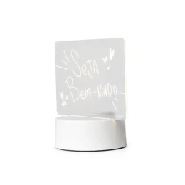 Descrição: Anote recados e decore ambientes como quartos, escritórios ou salas de estudos com esta luminária moderna e versátil. Ela combina iluminação suave em sua lousa produzida em acrílico, permitindo escrever mensagens e desenhos criativos. Sua base possui antiderrapante em EVA e o seu é funcionamento via USB. Além disso, acompanha caneta com tampa apagadora e um pano para auxiliar na hora da limpeza.