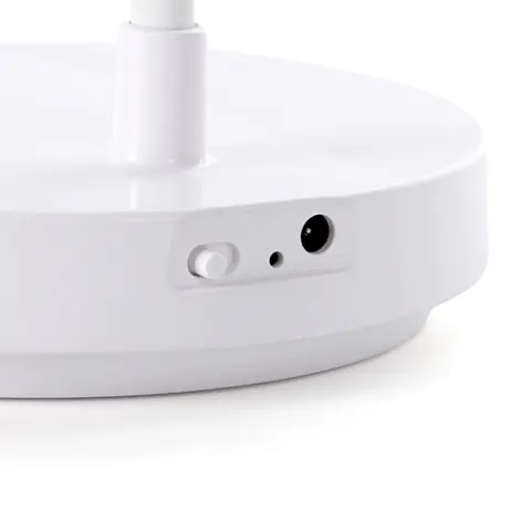 Descrição: Luminária articulável em led recarregável e funcionamento touch, material plástico. Contém três estágios de iluminação com regulagem de intensidade touch: luz fria (branca), luz quente (amarela) e luz mista (branca e amarela). Base com botão para ligar e desligar. Acompanha uma bateria de lítio e cabo USB para carregamento.