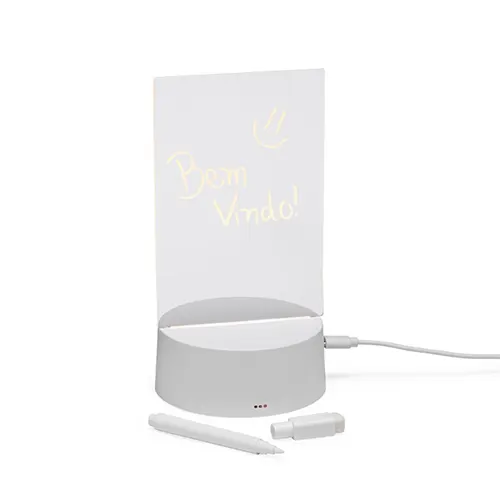 Descrição: Muito mais do que uma luminária de mesa led, ela transforma qualquer ambiente, trazendo aconchego e um toque personalizado! Com sua tela acrílica 3D, é possível soltar a criatividade e deixar mensagens inspiradoras, lembretes importantes ou até desenhos fofos, tudo de um jeito prático e super divertido! Super fácil de usar, funciona com cabo USB ou 3 pilhas AAA (1.5V) não inclusas. Além disso, acompanha uma caneta plástica com apagador integrado, tornando a experiência ainda mais prática e interativa. Essa luminária é perfeita para iluminar o ambiente e deixar recadinhos incríveis do seu jeito!