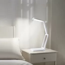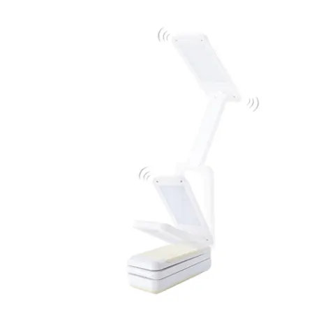 Descrição: Luminária retrátil recarregável com 14 leds e funcionamento touch, material plástico. Contém três estágios de iluminação com regulagem de intensidade touch: luz fria (branca), luz quente (amarela) e luz mista (branca e amarela). Base com botão para ligar e desligar e área para encaixe na parte inferior. Acompanha uma bateria de lítio e cabo USB para carregamento.