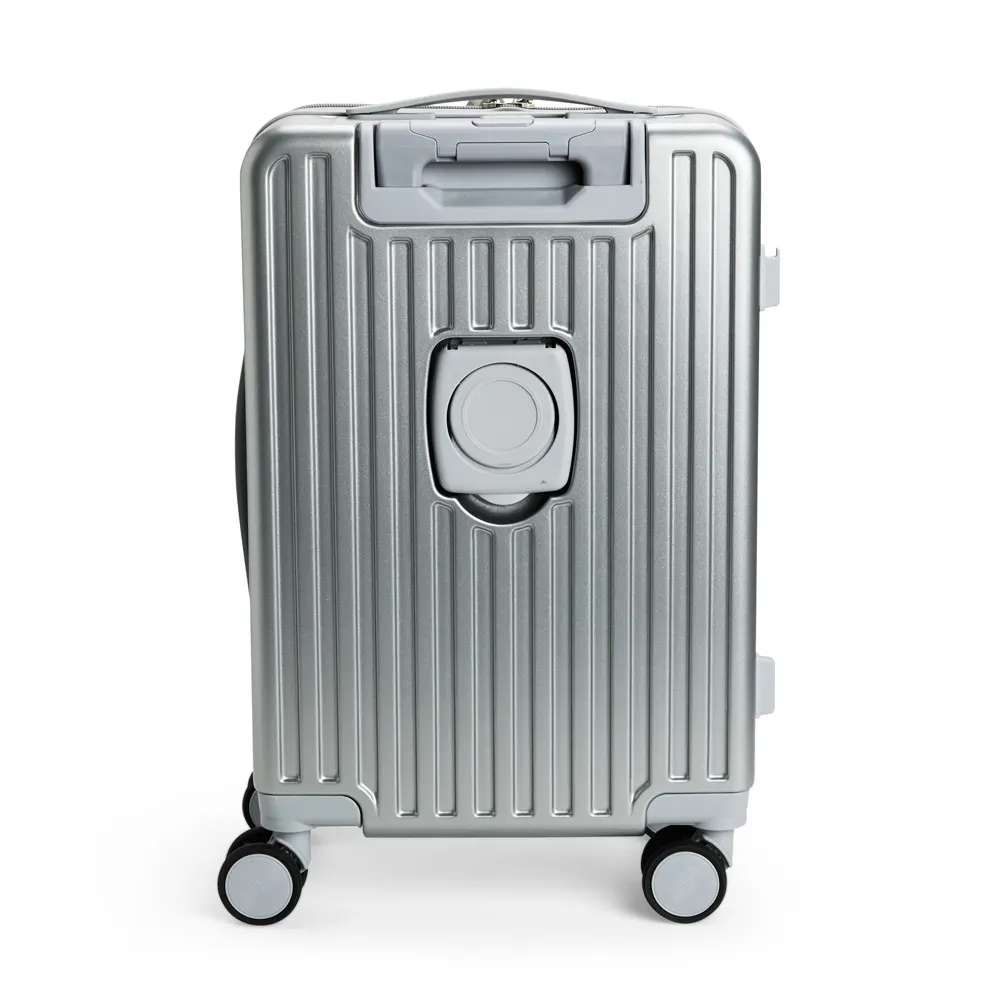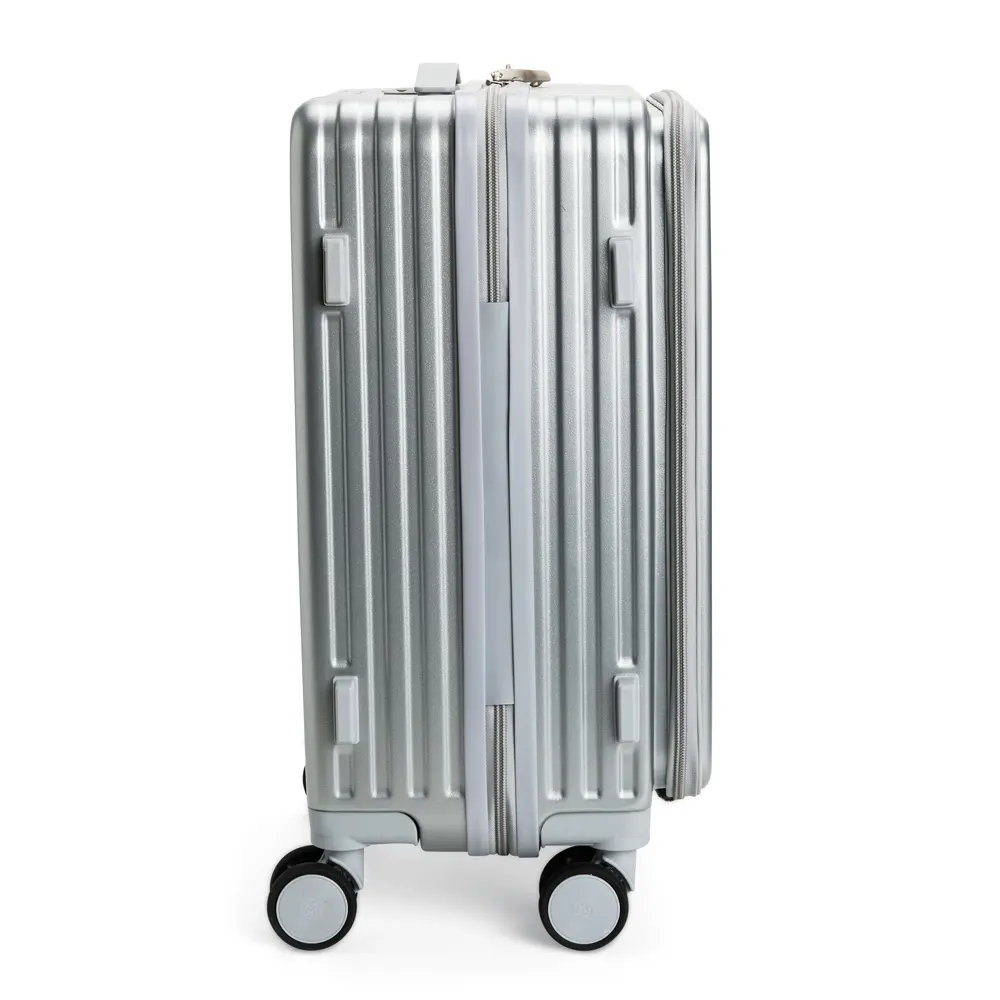 Descrição: Mala de viagem feita em ABS com capacidade de até 33 litros quando o zíper externo de expansão é aberto. Possui abertura frontal com bolsos de zíperes, uma divisória para notebooks de até 15,6 polegadas e cinta compressora para roupas. Conta ainda com cadeado TSA embutido na parte superior, quatro rodinhas giratórias 360°, duas alças de mão, além de apoios e ganchos laterais. Acompanha placa metálica personalizável.