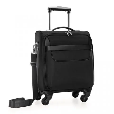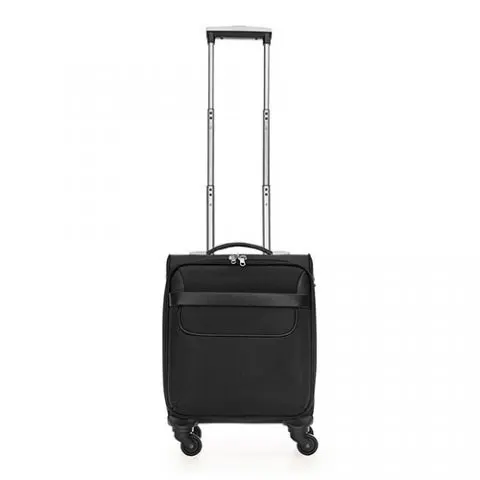 Descrição: Mala de viagem padrão IATA (Associação Internacional de Transportes Aéreos) confeccionada em nylon de alta qualidade, possui alça de mão emborrachada, puxador retrátil com botão acionador, sistema com 4 rodas multidirecionais, compartimento frontal de zíper com divisória para documentos e canetas e compartimento principal com bolso para notebook até 13.3 polegadas. A parte interna conta com um sistema organizatório através de uma alça de nylon ajustável, quando utilizada impede que as roupas se movimentem dentro da mala durante o transporte. Acompanha alças de nylon com encaixe de mosquetão (removíveis).