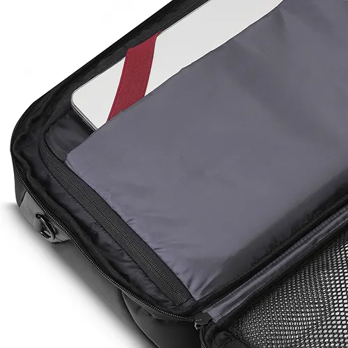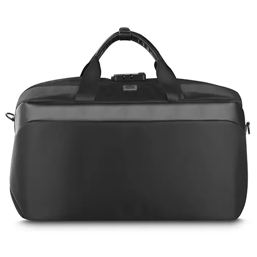 Mala executiva em poliéster 600D com interior em 210D, compartimento interno com zíper, alça de ombro e mão, entrada usb, cadeado com senha/segredo, cadeado tipo TSA e compartimento para notebook de até 15,6″.