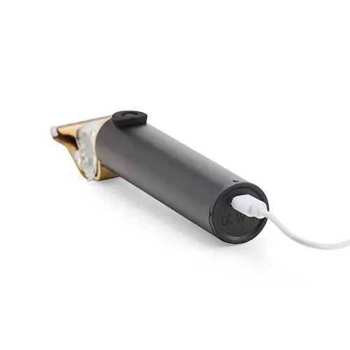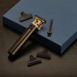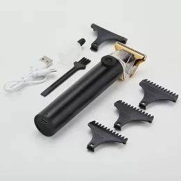Descrição: Máquina de cortar cabelo recarregável com lâminas em aço inoxidável, tampa plástica e corpo de alumínio. Acompanha 4 pentes plásticos (1mm, 2mm, 3mm e pente de proteção para as lâminas), escova de limpeza, óleo lubrificante e cabo USB-Tipo-C.