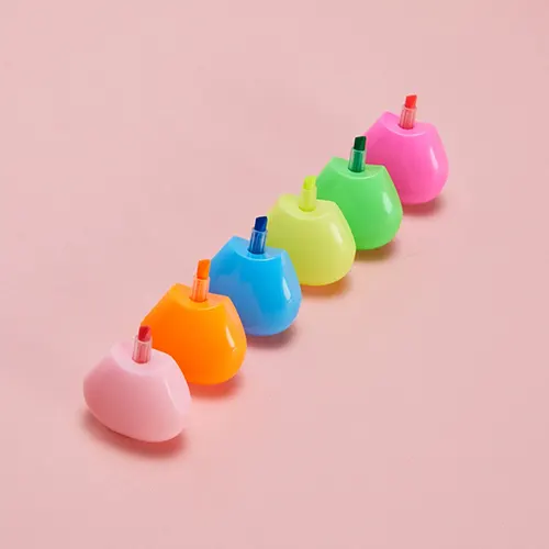 Descrição: Caneta marca texto em formato Flor na cor branca de frente e verso liso, possui as cores: azul, verde, rosa, amarelo, laranja e rosa escuro.