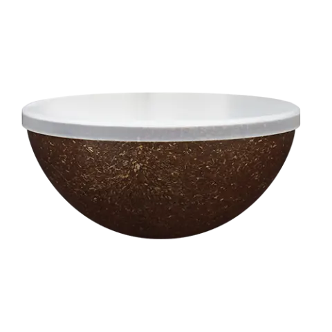 Capacidade 240ml. Mini Bowl com tampa, feito com 50% de fibra de coco ou madeira e 50% de Plástico Premium (PP) atóxico, resistente à micro-ondas e lava-louças. Produto sustentável, feito através do reaproveitamento de resíduo de casca de coco ou de madeira de reflorestamento.