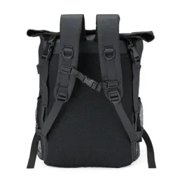 Descrição: Com um design prático de um bolso gigante, nossa mochila de 34 Litros é a opção perfeita para quem precisa de espaço e versatilidade, seja para lazer, viagens ou trabalho. Resistente à água, feita em couro sintético e nylon, ela conta com bolso frontal com zíper, além de um bolso interno ideal para guardar documentos ou celular com segurança. O compartimento principal oferece um bolso para notebook e muito mais espaço para itens do dia a dia. O fechamento por velcro permite que a mochila seja dobrada e reforçada com fivelas ajustáveis, que também estão presentes nas laterais, tornando-a expansível quando necessário. Ainda tem dois bolsos de tela nas laterais, ideais para garrafas ou outros itens essenciais. E para garantir seu conforto, a traseira e as alças são acolchoadas e revestidas, oferecendo uma experiência de uso mais agradável durante o dia a dia.