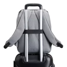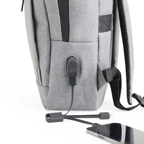 Descrição: Mochila de nylon 21 Litros com dois compartimentos, sendo o principal com bolso para notebook 15,6. Com divisórias internas para acessórios, a mochila possui bolso lateral, suporte externo USB e alça para engate em malas de viagem.