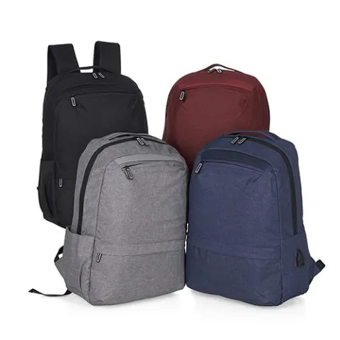 Descrição: Mochila confeccionada em nylon com compartimento para notebook até 15,6 polegadas. Contém dois compartimentos frontais com abertura horizontal, bolso lateral e adaptador USB externo com cabo acoplado, permitindo a conexão de um carregador portátil de dentro da mochila e transferência da carga para o lado externo, ocultando o carregador e viabilizando a utilização do celular durante o processo. Contém zíperes com pegadores metálicos, alça de mão em nylon e alças para as costas ajustáveis com revestimento espumado antitranspirante.