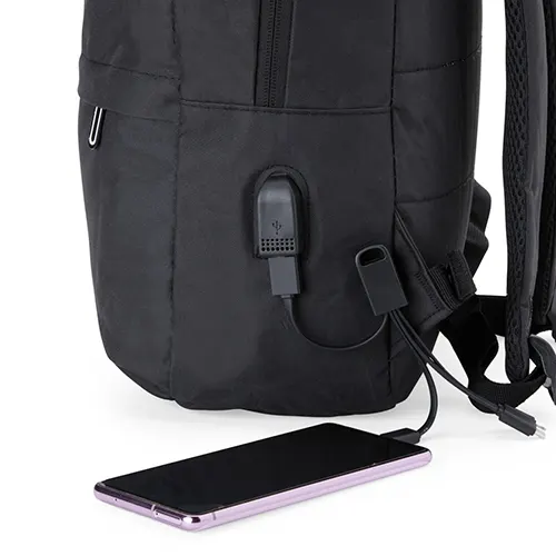 Descrição: Mochila de nylon 24 litros com três compartimentos, sendo o principal com bolso para notebook 14 polegadas. A mochila possui um bolso lateral e suporte externo usb.