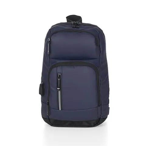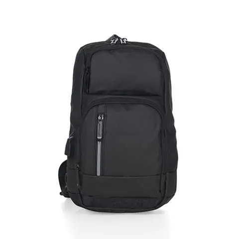 Descrição: Mochila de ombro com entrada USB lateral. A mochila possui 3 bolsos frontais 1 compartimento principal e 1 bolso traseiro, sendo 1 bolso frontal com detalhe refletivo no zíper, além de 3 compartimentos internos, sendo 1 para armazenar tablet, netbook ou Ipad de até 9 polegadas. Alça com tira de nylon, 2 fivelas para opção de encaixe, parte traseira com revestimento espumado antitranspirante, e alça de mão em nylon.