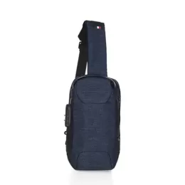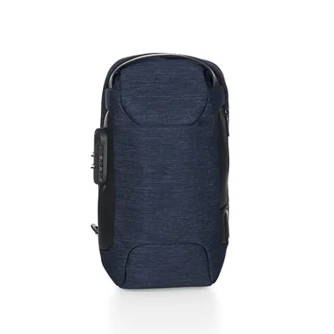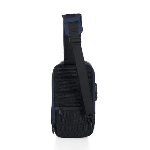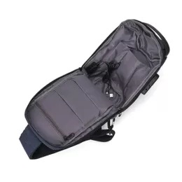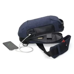 Descrição: Mochila de ombro com entrada USB e Micro USB lateral. A mochila possui, um compartimento principal com segredo (TSA), bolso oculto na parte traseira, além de 3 divisórias internas, sendo uma capaz de armazenar tablet, netbook ou Ipad de até 9 polegadas. Alça de mão e detalhes laterais e inferiores em couro sintético, tira de nylon na alça, 2 fivelas para opção de encaixe da alça, revestimento espumado antitranspirante na parte traseira e na alça, e tecido resistente a água.