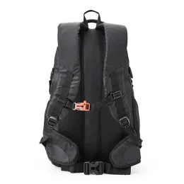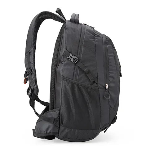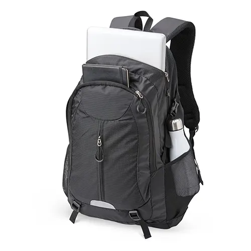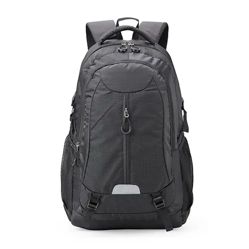 Descrição: Leve tudo e mais um pouco com a nossa mochila de poliéster de 43 litros. Espaçosa e eficiente, possui três compartimentos, sendo o principal com um bolso para notebook de até 15,6 polegadas. Conta com divisórias internas para manter acessórios organizados e bolsos laterais de tela para acesso fácil aos itens essenciais. Esse modelo possui revestimento espumado nas costas para maior conforto e, para sua segurança, tem um detalhe refletivo na parte frontal, aumentando sua visibilidade em condições de pouca luz. Além disso, há um apito integrado em uma das fivelas, e as alças de compressão e compensação ajudam a distribuir o peso de forma equilibrada.