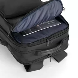 Mochila Premium produzida em tecido de poliéster, alça de ombro acolchoada, aceita notebooks de até 15,6”. Design ergonômico, alça de ombro ajustável, porta USB na lateral da mochila, possui engate para mala de viagem, bolso frontal com zíper para acesso rápido.