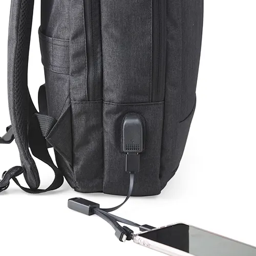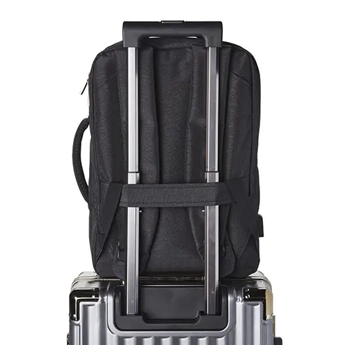 Descrição: Mochila de poliéster impermeável 19 litros com 4 compartimentos, sendo o principal com bolso para notebook 15,6 e compartimento com bolso sanfonado, ideal para documentos. Com divisórias internas para acessórios, a mochila possui suporte externo USB, alça para engate em malas de viagem e duas alças de mãos, sendo uma delas para o transporte da mochila no formato pasta.