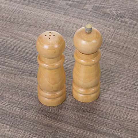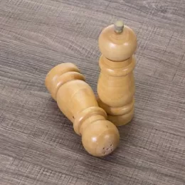 Moedor de Pimenta e Saleiro em madeira. Para abrir o moedor basta desrosquear o “pino” superior e para abrir o porta pimenta basta desrosquear a tampa branca na parte inferior.