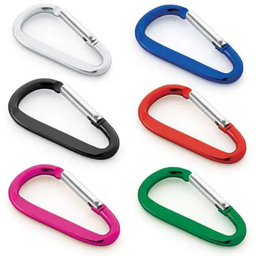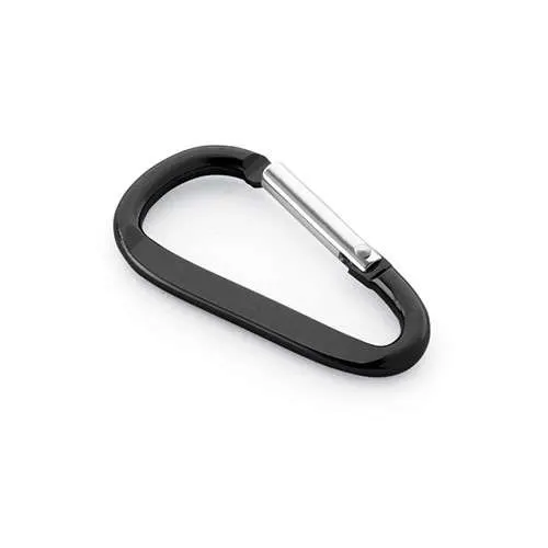 Mosquetão. Alumínio. Com área plana para gravação. 24 x 48 x 4 mm