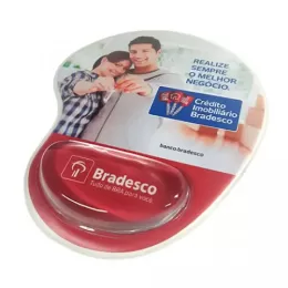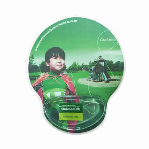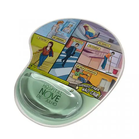 Descrição: Mouse pad Ergonômico Gel em PVC, Soldado em Maquina de Solda Eletrônica e Reforçado, parte inferior em material emborrachado antideslizante, Impressão Didital.