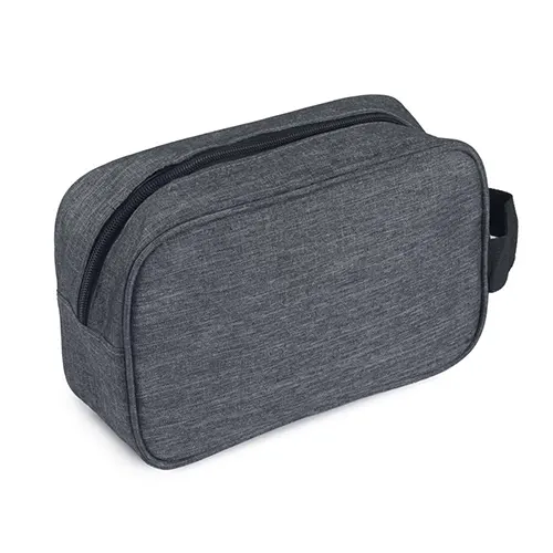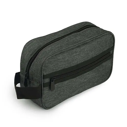 Nécessarie em tecido poliéster 300D, alça de mão e bolso externo com zíper.