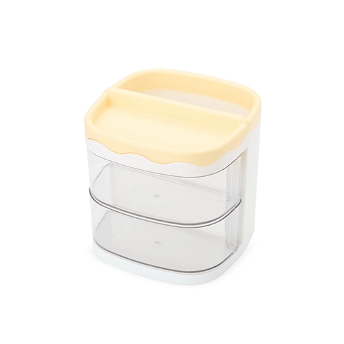 Descrição: Deixe o espaço da mesa de estudo ou trabalho mais organizado, bonito e prático! Feito em plástico e acrílico, o organizador combina funcionalidade e um toque de beleza. Conta com 2 compartimentos versáteis para lápis, pincéis de maquiagem, canetinhas coloridas ou o que mais desejar, além de um espaço raso para itens como borracha e outros acessórios. Também possui 2 gavetas para objetos diversos, como cola, clipes, mini grampeadores e muito mais. Com este organizador de mesa, é possível usar a criatividade para organizar e decorar.
