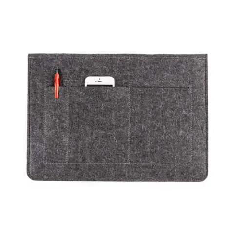 Pasta Envelope 2039 com forro e dois bolsos internos. Tecido de feltro com tonalidade mais clara na parte interna e dois botões prata que podem ser encaixados em dois tamanhos. Possui também no verso outros bolsos: dois para documentos e um para canetas. Acompanha placa metálica para personalização.