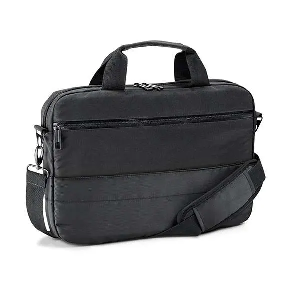 Pasta para Notebook. 840D jacquard e 300D. Compartimento para notebook 13.3”. Interior forrado e almofadado. Alça de ombro e alça para transporte em trolley. 360 x 260 x 50 mm