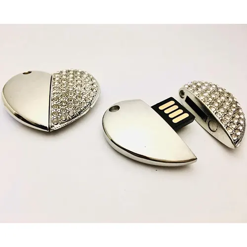 Pen Drive Coração, um modelo em formato de coração cravejado em strass, repleto de estilo, design inovador, elegante e cheio de charme, pode ser usado como acessório, colar ou pingente, transformando o seu pen drive em uma joia! Muito conhecido no ramo de Brindes Promocionais, por seu charme e sua delicadeza, agradando o público feminino em datas e eventos especiais. O brinde pen drive pode ser personalizado com o logotipo de sua empresa em ambos os lados, em metal liso e aderente a gravação a Laser alta resolução, destacando a sua marca e valorizando ainda mais a sua empresa. É um brinde personalizado para empresas diversas, sendo moderno, útil para agradar o seu público alvo. O pen drive personalizado é perfeito para presentear parceiros, colaboradores e clientes. Os brindes podem ser utilizados em eventos como (campanhas promocionais, feiras, lançamentos de produtos, congressos, exposições e ações de marketing). O pen drive é útil para salvar vários tipos de arquivos, fotos, áudios, vídeos, músicas, proposta comercial, apresentação comercial entre outros documentos, o pen drive personalizado com memórias COB nas capacidades(Gb) 4Gb, 8Gb, 16Gb, 32Gb e 64Gb possui garantia de 12 meses.